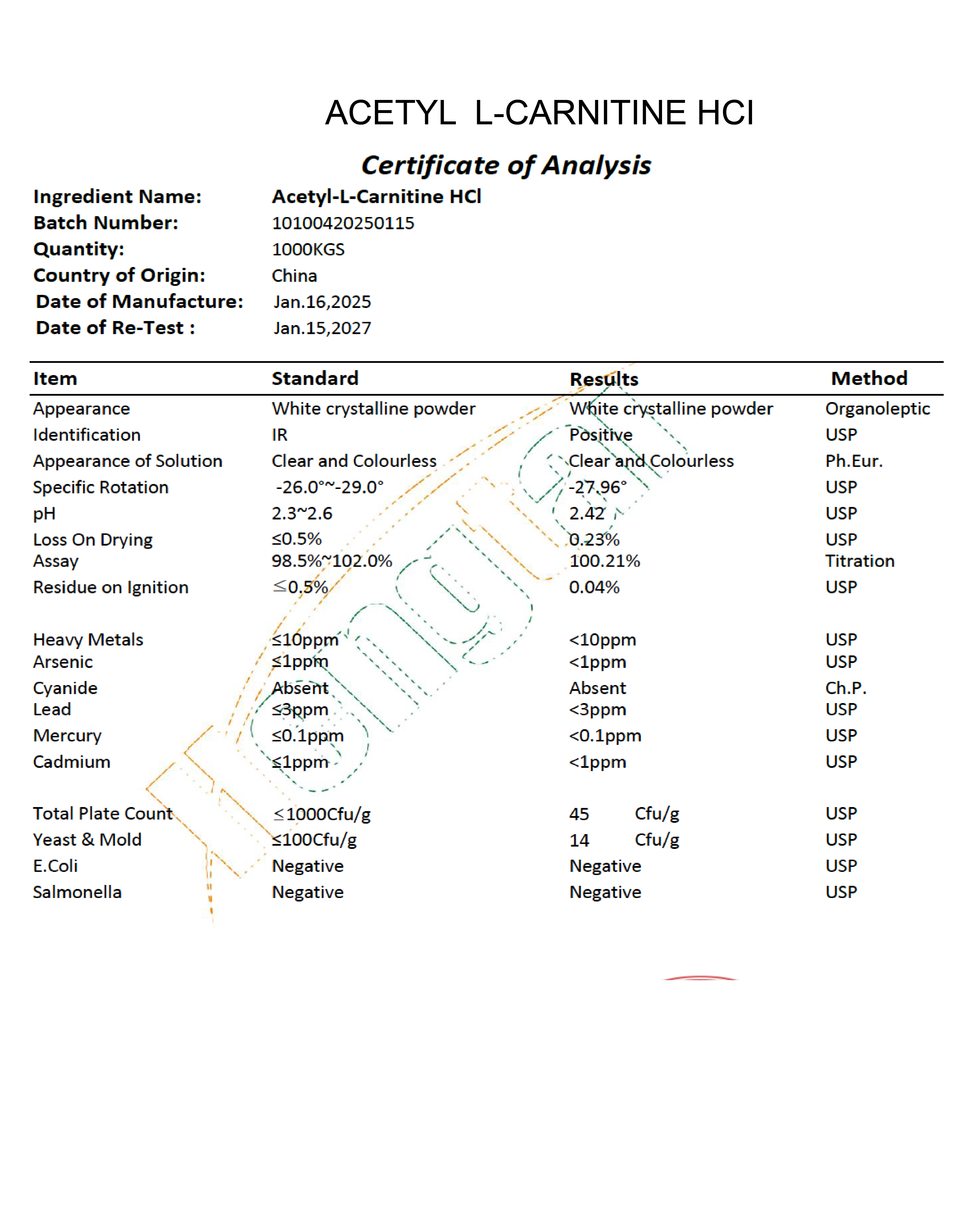 | Mercury | ≤0.1ppm | <0.1ppm | USP |
