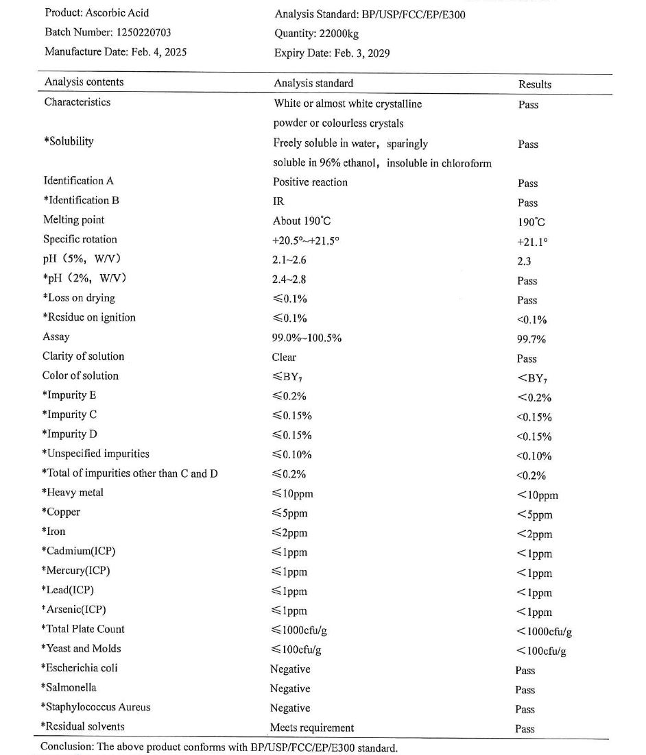 Bu ürün, doğal kaynaklardan elde edilen saf askorbik asitin farmasötik kalitede bir formudur.