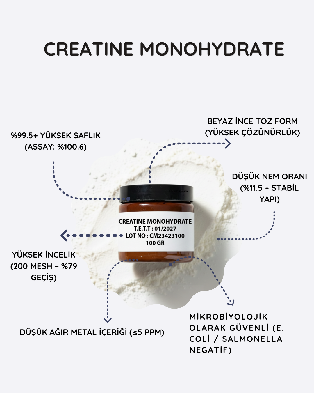 CREATINE MONOHYDRATE – %100 Saf Hammadde (Toz) Yüksek Saflık | Premium Kalite | Katkısı
