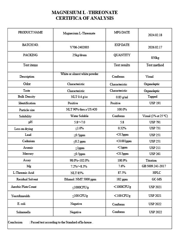 %100 Saf Magnesium L-Threonate (C8H14MgO10)