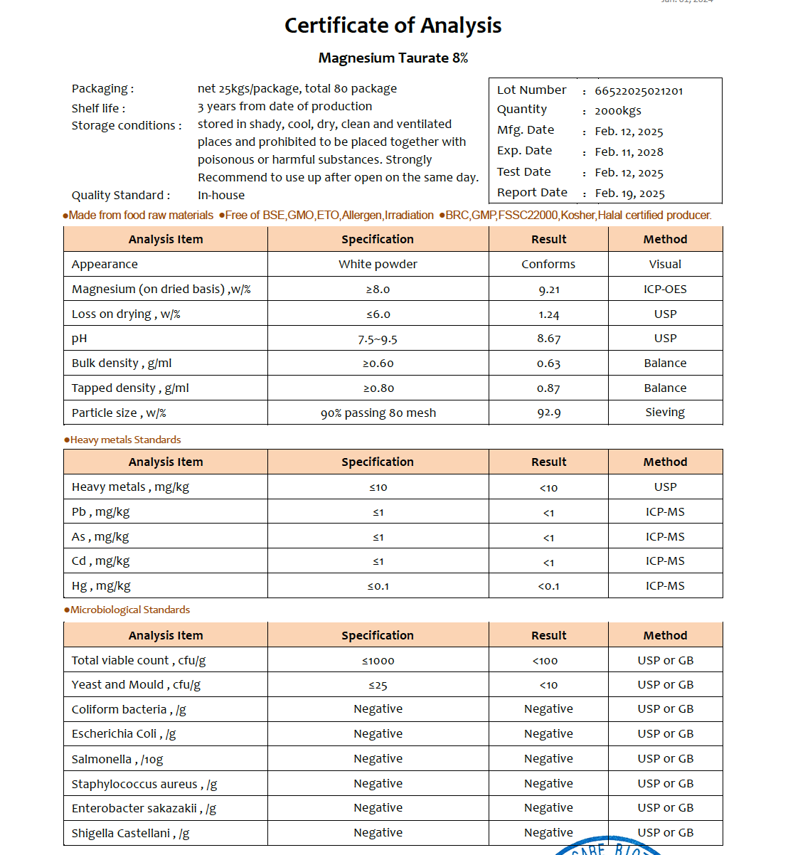 %100 Magnesium Taurate (Magnezyum Taurat) saf toz.