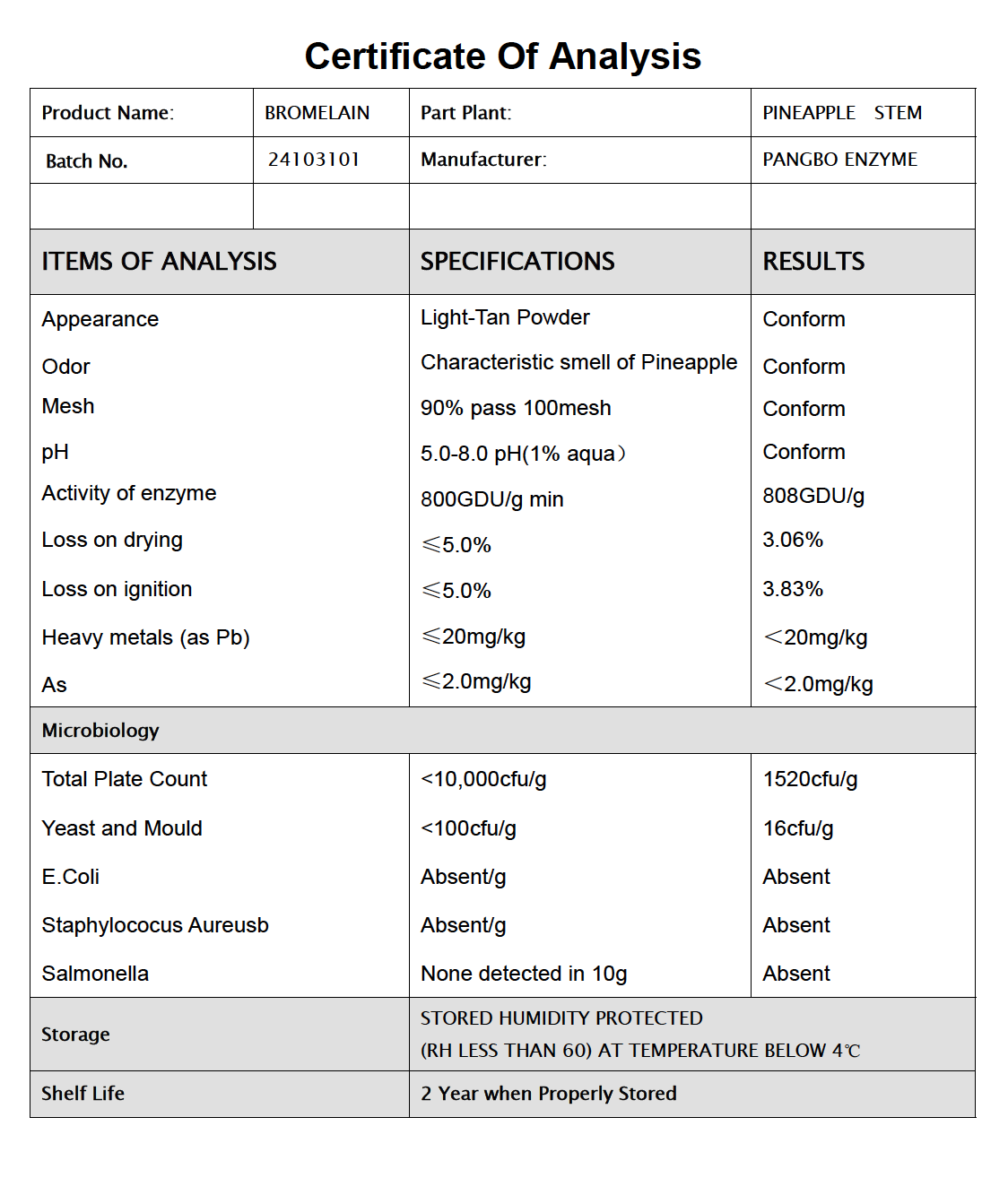 %100 Bromelain (Ananas meyvesinden elde edilmiştir)