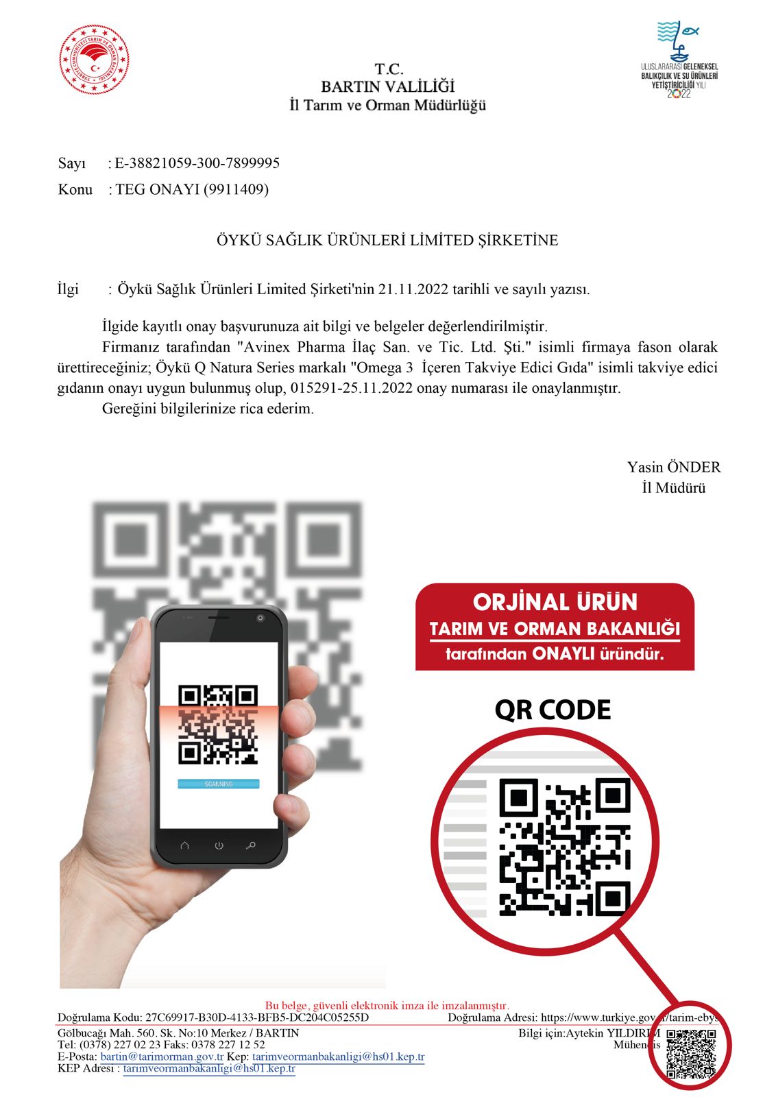 Takviye Edici Gıda Onay No: 015291-25.11.2022